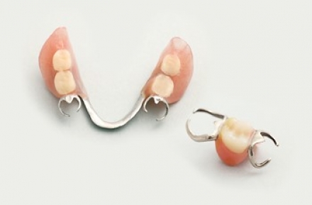 部分入れ歯の場合、金属のバネを残っている歯に引っかけて
